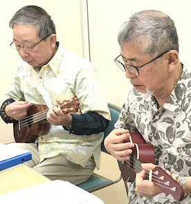 楽器が好きで今回はウクレレに挑戦をしていると吉田さん(写真右)