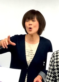 呼吸の仕方で胸や肺などを緊張したり、脱力したり繰り返します。この発声の練習を行うことで奥行きのある声に近づきます。 まだ日が浅いことから、エーデルワイスの曲を母音のみで声を出す発声練習を、と谷村玲子先生。「丹田から空気が通るたびに喉でぽつんと音を作る感じで声を見つけて行きましょう」とアドバイス。少しずつ発声をして歌を作ります。