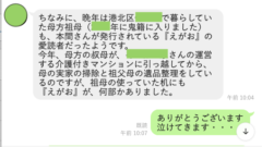 耳が遠いからと言う話でしたのでお返事は大きく首を振り、顔を覗き込み、そして少し大きめな声で耳元でお話をしました。