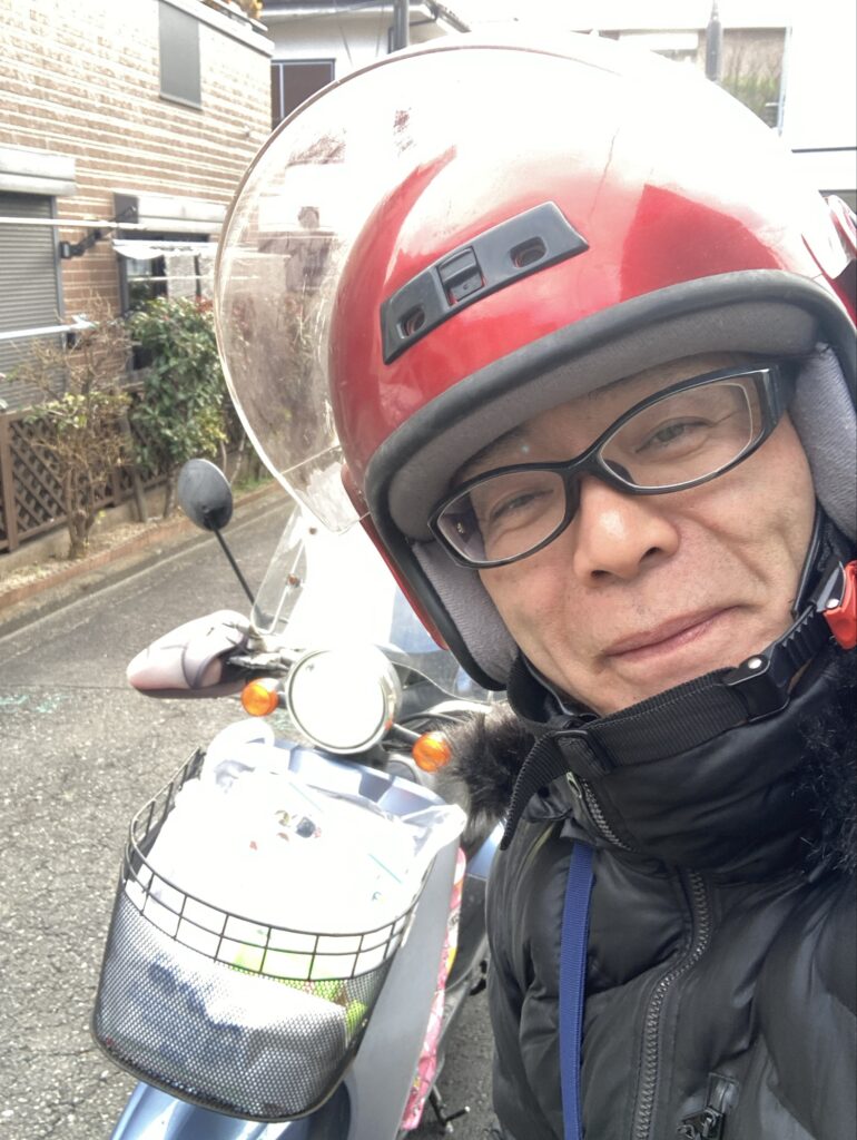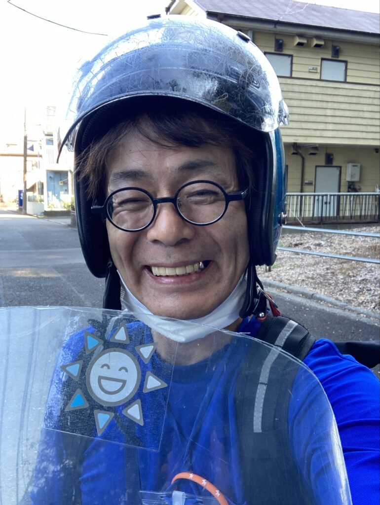 今度からは赤いヘルメットのスカイブルーのスクーターに黒い箱を付けた、なんか嬉しそうにニコニコ走る僕を見つけたら「えがおさーん!」とか「ほんまさーん」とか手を降ってくださいね!