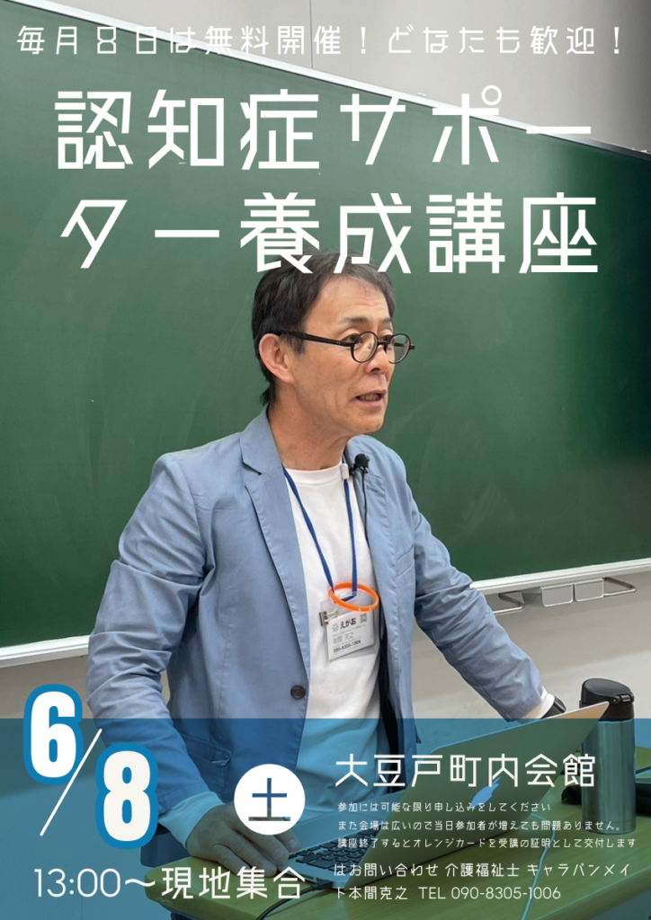 毎月8日開催している完全無料の認知症サポーター養成講座のお知らせです。