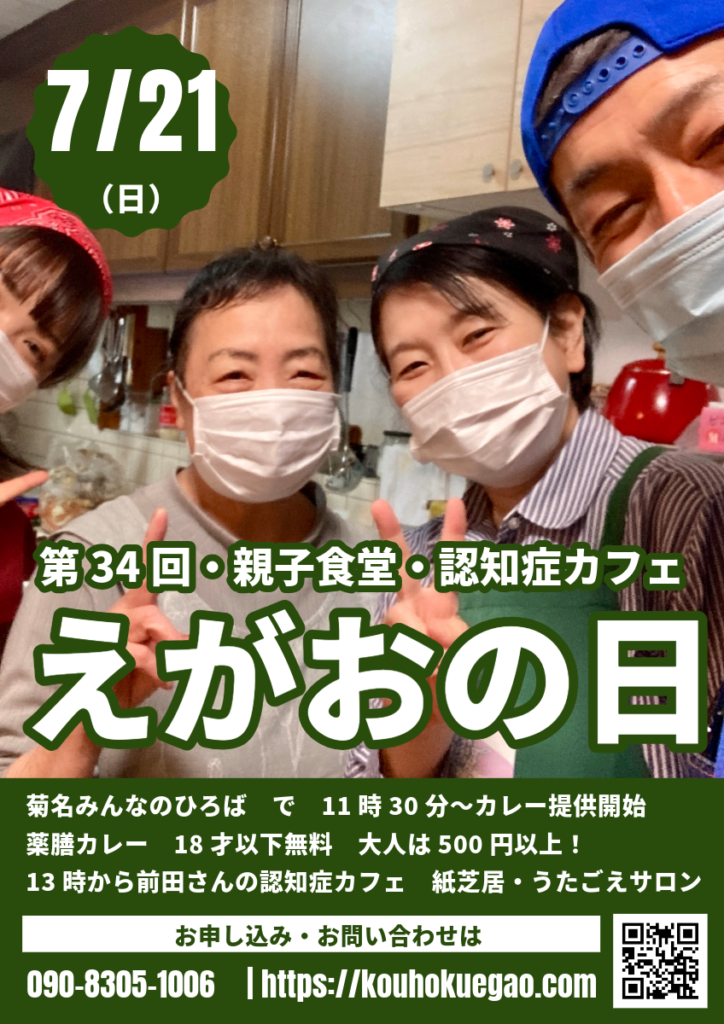 えがおの日 7/21 えがお X Facebook はてブ LINE Pinterest コピー 2024.07.19 大人気!フリーペーパーえがおとは Tweet Pocket お誘い えがおの日 7月21日(日)11時半から開催のお知らせ 菊名みんなの広場 18才以下無料の 薬膳カレー!MCI当事者の前田さんがオーナーの認知症カフェ、紙芝居うたごえさろんスマホ座談会(参加費300円)ランチ代おとな500円以上です! 090-8305-1006 https://kouhokuegao.com/egaonohi Tweet Pocket