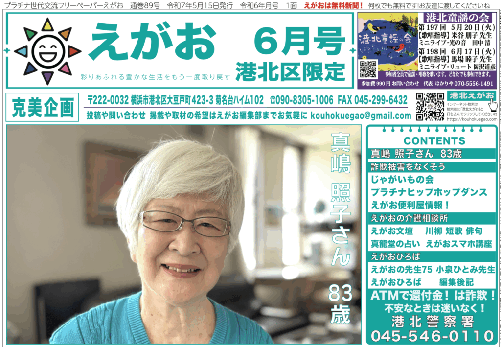 ★5月15日発行6月号 表紙は真嶋照子さん