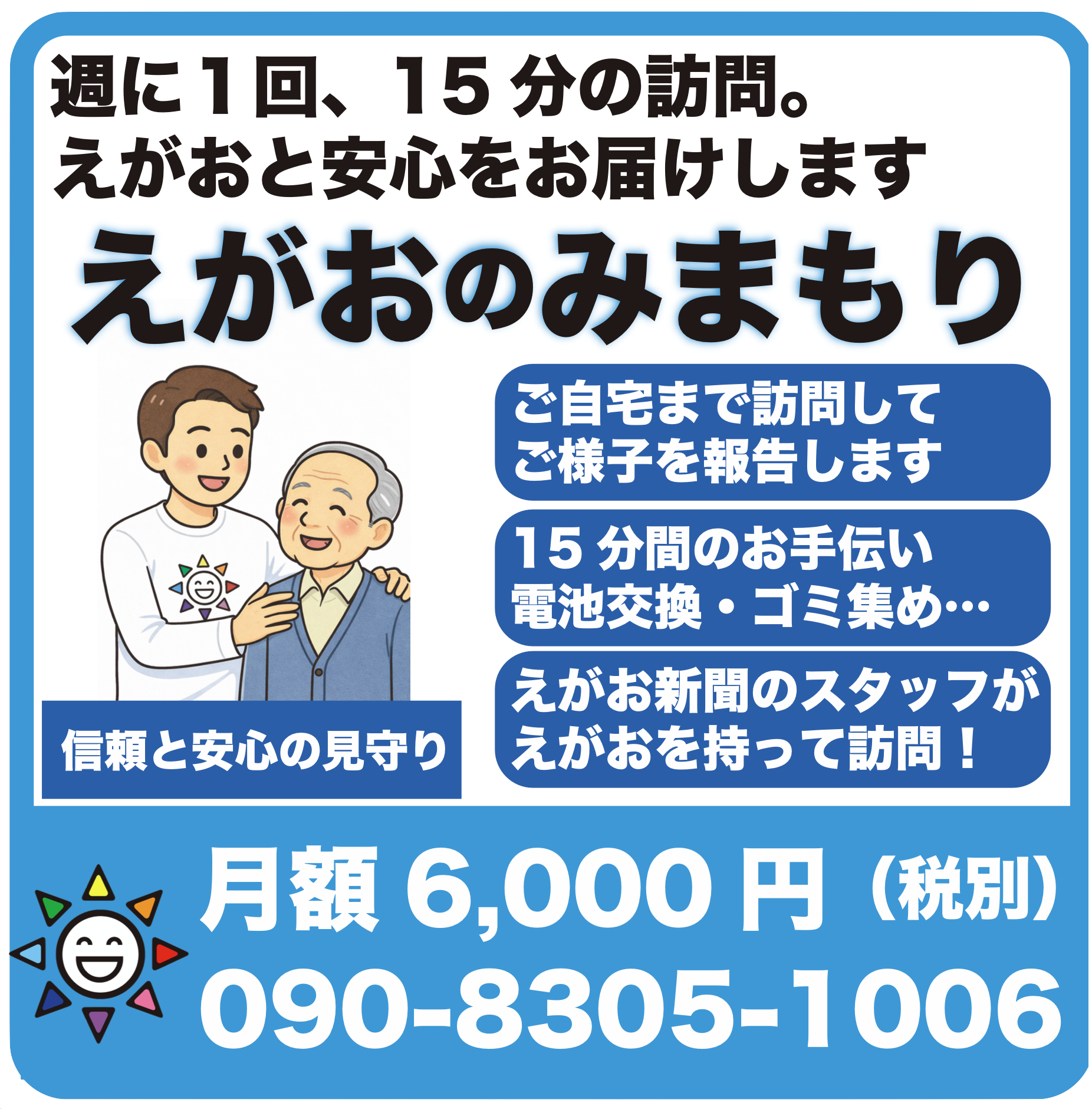 Q:近所に知られたくないのですが…… A:通常は「えがおのみまもり滞在中」の掲示を行いますが、ご希望により掲示せずに待機することも可能です。