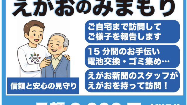 えがおのみまもり新しいサービスとしてえがおのみまもりを開始します!港北区のご実家へ。毎週15分、プロが届ける「えがお」と安心。介護福祉士が直接訪問し、離れて暮らすあなたへ訪問直後のスマホ報告をお届けします。電話では見えない親の姿を、プロの目で見守ります。「本当は、もっと頻繁に顔を見に行きたいけれど……」そんな想いを抱えるあなたへ。港北区にご実家があり、お一人やご夫婦で暮らす親御さんを想うとき、ふと胸が痛むことはありませんか?・仕事が忙しくて、今月も帰れなかった・ちょっとだけ誰かが見てくれて様子を聞けたら・・・・電話の「元気だよ」に、少し違和感を感じる・もしもの時に、誰が気づいてくれるんだろう・顔を見に行きたいけれど、なかなか見に行くこともでき・そのためだけに、仕事を休むわけにもいかないし・妻(家族)や子どももいるし、休みを使うのにも少し抵抗がある遠くに住んでいるからこそ、何かしてあげたい気持ちと、何もできていない自分への申し訳なさが、積み重なっていく。そのお気持ち、私たちは痛いほどよくわかります。あなたが港北区に帰れない時間を、私たちが「安心」で埋めます。親御さんのえがおを確認し、その...続く
